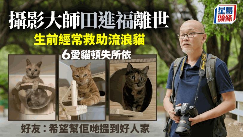 曾入圍「國家地理旅遊攝影師大賽」的香港風景攝影大師田進福周一(18日)於大東山拍攝日落相後暈倒,送院搶救後不治,令家中6隻貓貓頓失所依。有熱心朋友協助田進福的6隻「遺孤」尋家,「朋友(田進福)生前將佢哋視如己出,用心照顧,希望可以幫佢哋搵到好人家」,強調所有領養者都必須承諾不棄養及不轉售。