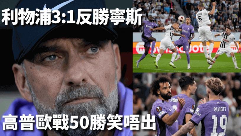 今季降格踢歐霸盃的利物浦周四於E組首輪作客3:1反勝奧地利的寧斯,高普(Jurgen Klopp)成紅軍第一位歐戰累積50勝的領隊。不過,紅軍又一次先失球,要靠下半場換入主力後才反勝,高普亦警告球員不可輕視歐霸,並指留待歐霸分組出線後才稱得上紅軍最出色領隊。高普唯一值得高興是首次正選上陣的中場新兵賴恩格雲貝治表現出色。