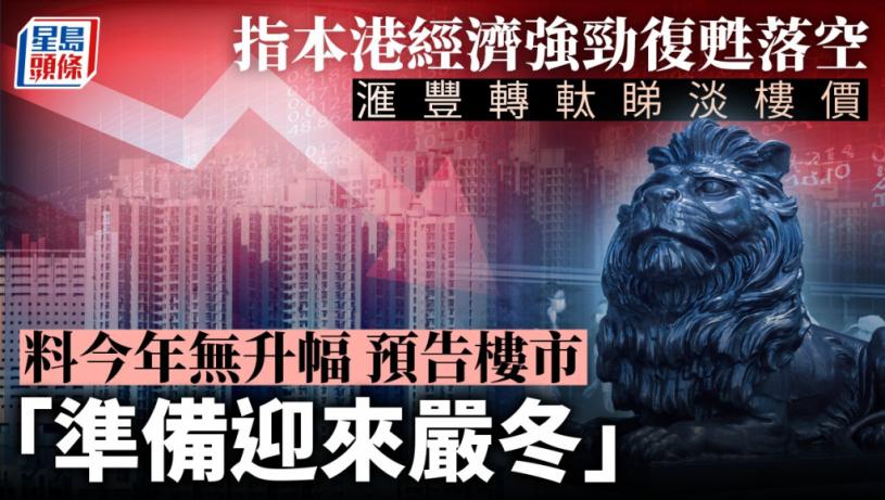 滙豐環球研究以「準備迎來嚴冬」(Brace for a hard winter) 形容本港樓市前景,承認原先預測過於樂觀,指由於現時本港樓價下跌、需求疲軟,加上近期按揭利率上調50基點,及經濟復甦疲弱,均進一步打擊原本脆弱的市場情緒。該行觀察的三個領先指標財富效應、銀行按揭景氣及樓宇估值,以及成交量,均指向進一步疲弱。該行最新預期,今年全年本港樓價無升跌,明年上半年再跌5%後,下半年才能靠穩。該行之前預期2023及2024年樓價分別升8%及4%。