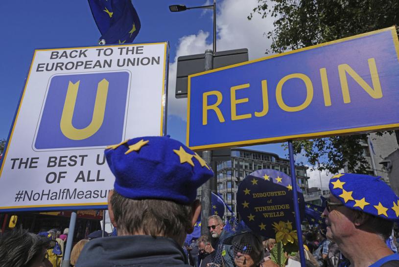 數百名反對英國脫歐的民眾,周六在倫敦市中心遊行,呼籲英國重新加入歐盟。