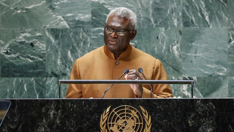 2023年9月22日,所羅門群島總理索加瓦雷在聯合國大會上發言。 路透社