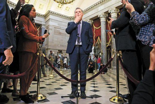眾議院議長麥卡錫因為政府開支案而陷入困境,答應保守派條件的話將導致政府停擺,若動員溫和派與民主黨人支持通過預算的話,保守派又會向他發起罷免動議。在進退兩難的情況下,麥卡錫表示有意與總統拜登會晤,不過白宮表明,拜登將堅守立場不再讓步。