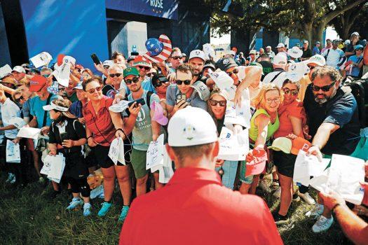 萊德盃賽前練習輪,福勒為觀眾簽名。路透社