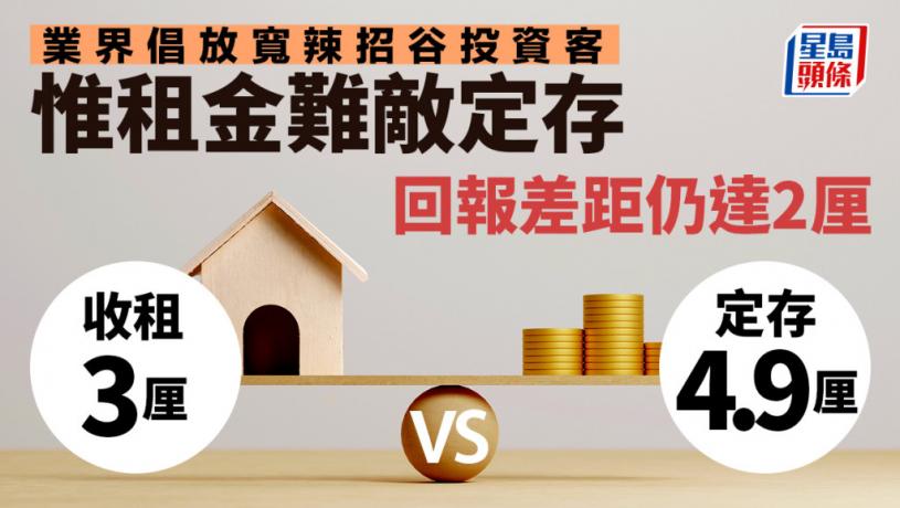 不過,相對於買樓收租,定存要求已相對簡單,因為買家置業時除了要付樓價外,也要付釐印費、律師費及買賣佣金等雜費;而且收租時同樣涉及租賃佣金、管理費及差餉等開支,隨時進一步蠶食租金回報,令實際回報低於3厘。