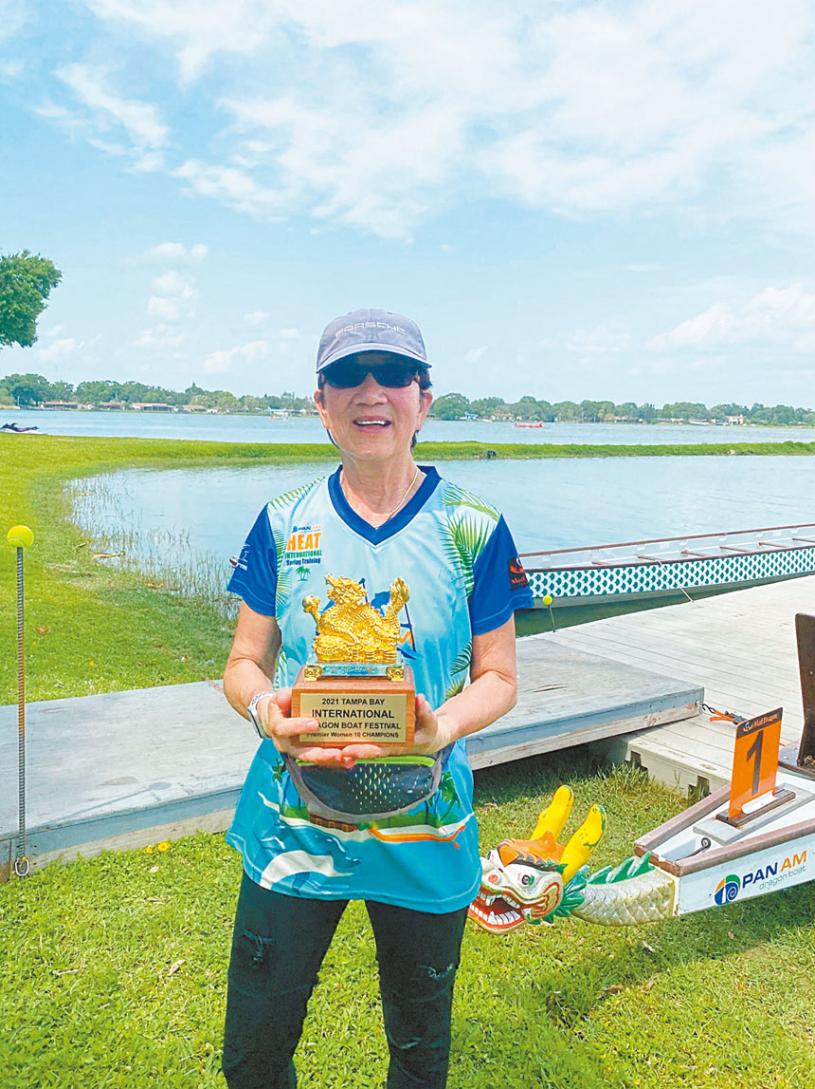 任雪飛今年已經67歲,住在柏克萊市,2013年開始划龍舟,參加過無數次大大小小比賽的她說,只要聽到過激情洋溢的龍舟鼓聲,就會明白為什麼那麼多人喜歡這項老少咸宜的運動,「龍舟的包容性極強,只要想划就可以參加,還經濟實惠,一年不到100元的會費,隨時可以上船進行訓練。」她還稱讚李曉駿教練對學員的逐一細心指導,令這支隊伍更有凝聚力。