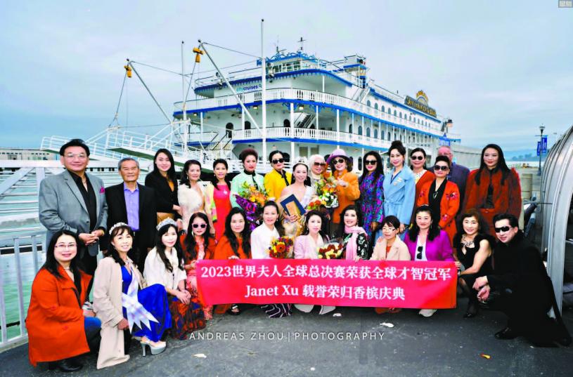 熱烈祝賀2022-2023 世界夫人全球總決賽頒獎盛典和慈善晚宴暨世界夫人國際文化周在美國紐約圓滿落幕! 恭喜來自北加州世界夫人Janet Xu 代表美國世界夫人榮獲2023全球才智冠軍和和諧家庭夫人獎。 11月5日在北加州舊金山Hornblower Cruise 郵輪上舉行載譽榮歸香檳午宴。 參加午宴的有北加州世界夫人執行主席嚴黎Lily Yan, 來自Janet Xu的家庭、榮獲2022年世界夫人北加州總決賽季軍,才藝冠軍—-Marina Tse世界夫人北加州愛心大使—- Daicy Chen、舊金山國際名媛的姐妹們和支持她的朋友們!