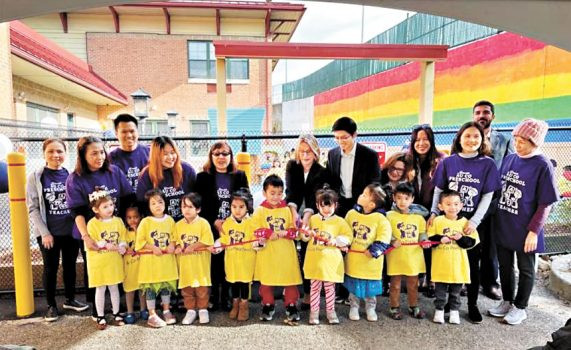 多切斯特VietAID的早期教育和保育專員艾米·克肖慶祝其翻修後的幼兒園獲得25萬美元的EEOST贈款,用於改善無障礙環境和安全性,包括購買遊樂場設備和圍欄。 馬薩諸塞州州政府供圖