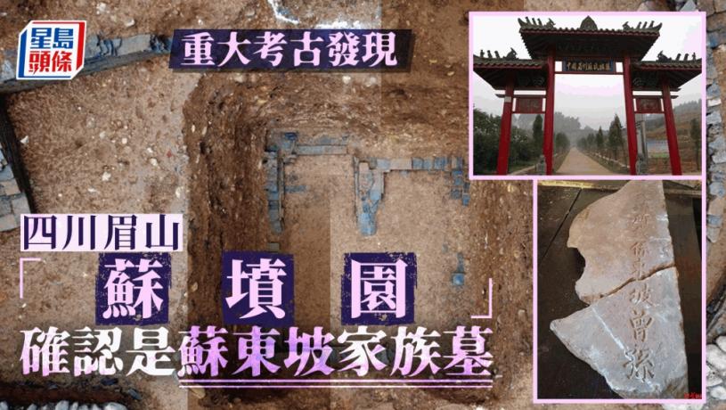 四川省文物考古研究院和眉山市文物局19日共同宣布重大考古發現,確認眉山的「蘇墳園」就是蘇東坡的家族墓,園中的「大蘇墳園」為蘇遼孫子蘇符墓葬,「小蘇墳園」為蘇遼曾孫、蘇符之子蘇山的墓葬。