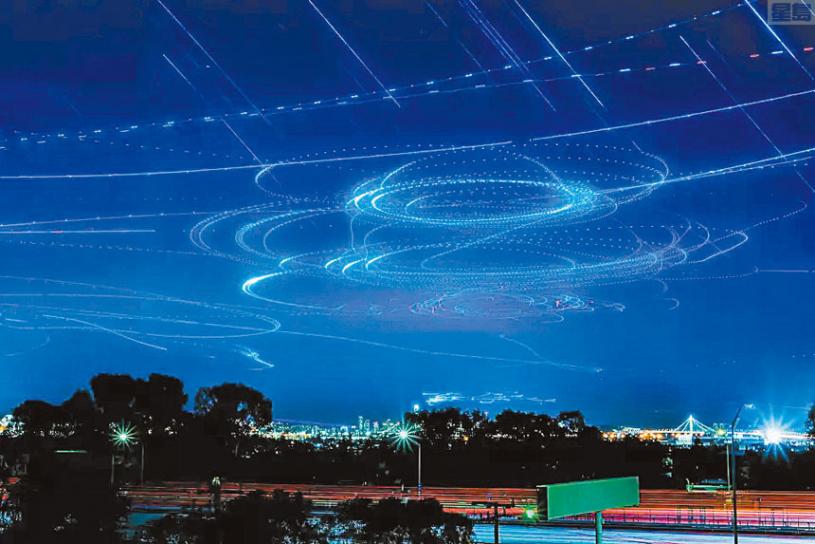 地方新聞網站SFGate報道,攝影師瑟文(Ian Servin)利用他的尼A7 III無反光鏡可換鏡頭相機配備50毫米基本鏡頭,記錄了三藩市APEC會議上空無數偵察機發出的光線軌跡,然後將大量照片合併成為一張。