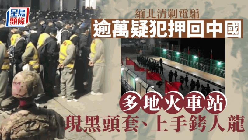 緬北同盟軍日前宣佈「清剿電詐」後,果敢地區大批涉及電騙的中國人被遣送,令內地如雲南昆明、浙江金華、安徽合肥等多處地方的火車站,出現大規模的押解畫面。內地警方指,這些押解回國的人員,一般視情況會先拘30天。據報,這波押解回內地的電騙疑犯達萬人。