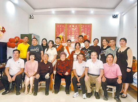 新郎大家庭合影,88歲新郎奶奶(前排中),李勐(前排右2)。