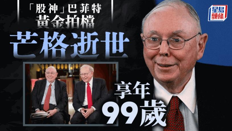 著名投資者巴菲特的長期拍檔、巴郡副主席芒格逝世,享年99歲。