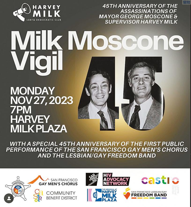根據米爾克性小眾民主俱樂部在Instagram宣布舉行活動的新聞稿,「這場燭光晚會將讓社區成員、社運人士和領袖聚在一起,深思米爾克與莫斯孔尼市長對性小眾族群和民權運動帶來的重要貢獻。這將是一個既莊重又慶祝的時刻,紀念他們對創建更包容和公平的社會所表現出來的堅定奉獻。」