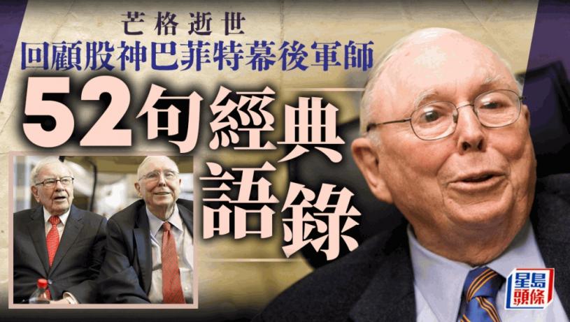 著名投資者巴菲特的長期拍檔、巴郡(Berkshire Hathaway)副主席芒格(Charlie Munger)逝世,享年99歲。巴菲特在聲明中表示,沒有芒格的靈感、智慧和參與,巴郡不可能達到今天的地位。這位投資天才芒格說過的經典語錄,句句扎心和刻心,在此回顧一下這位股神巴菲特幕後軍師的52句經典語錄。