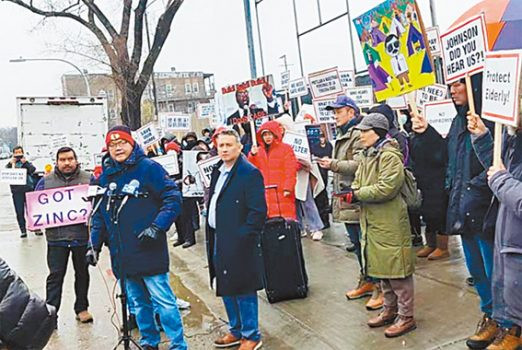 在26日下著細雪寒冷天氣中,居民聚集在38街夾加利福利亞大道的帳篷工地又一次舉行抗議行動,民眾憤怒的高喊「市長下台」、對市長約翰遜一再無視市民的反對、罔顧污染土地危害人類的健康、罔顧納稅人的基本知情權的行為感到異常的憤怒與不滿,呼籲發動罷免芝加哥市長約翰遜。
