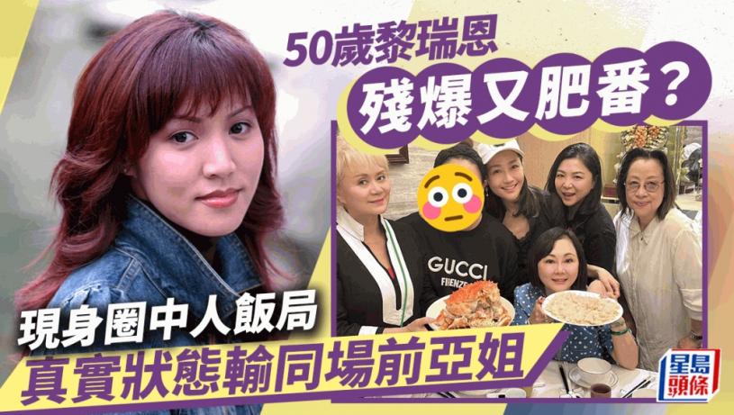 現年50歲的「小恩子」黎瑞恩2014年與金利來太子爺曾智明離婚後,一直獨力照顧大女曾凱栭和細仔曾浩儒,如今一對子女已長大成人,她一度簽約王祖藍經紀公司北上發展,近年則轉戰社交網間中開Live以歌會友。已鮮有公開露面的黎瑞恩,日前罕有現身圈中好友聚會,未料其發福殘爆Look嚇窒網民。