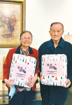陸肖華夫婦今年初接受寒冬送暖時留影。