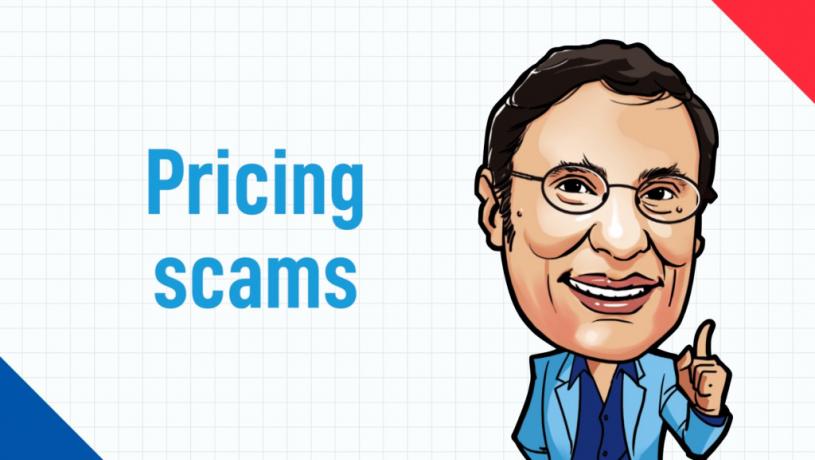 A scam is a dishonest plan to cheat people out of their money. A pricing scam is deceptive pricing. The US has strict rules against fake sales. It is illegal, for example, to sell something at a very high price for a few days, then reduce it to its original price and say it’s a discount. US consumers and the government have taken many retailers to court for such pricing scams, but some still take the risk during the holiday season. I have written about deceptive pricing by Hong Kong supermarkets before, but it seems the Consumer Council is a toothless tiger.