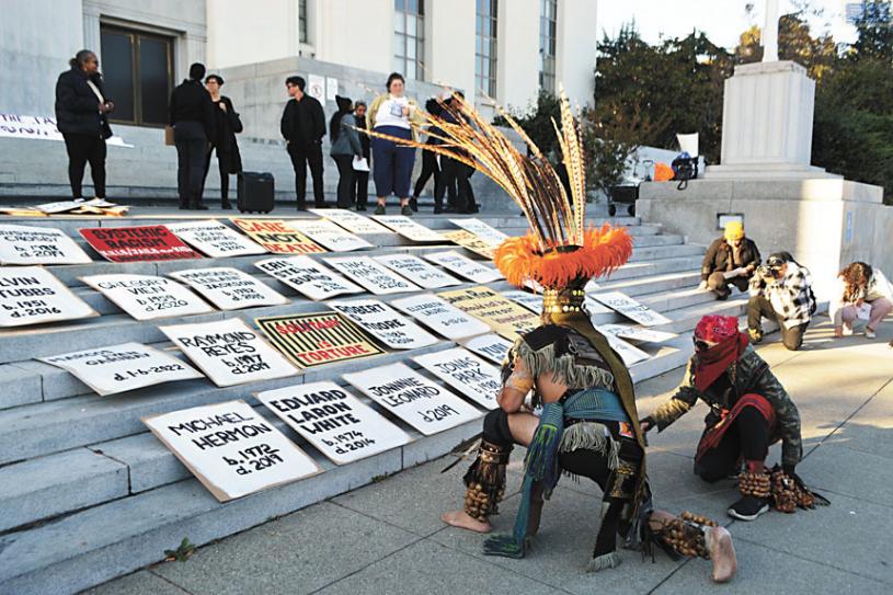 集會人士在樓梯上鋪滿69名自2015年在該監獄死亡的囚犯名字,原住民組織Poor Magazine為他們舉行哀悼儀式,之後的遊行模擬了送葬隊伍,向那些生命致敬,並繼續為那些還活著的人爭取。