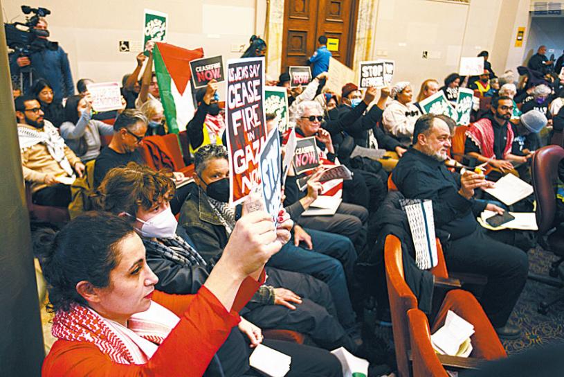 最近的民調顯示,66%的美國人和超過80%的民主黨人支持加沙立即停火。來自市議員和國會議員等民選官員的壓力日漸升高,支持立即永久停火。美國的民權組織報稱,上月仇視伊斯蘭教和反阿拉伯仇視事件大幅增加。本報屋崙訊