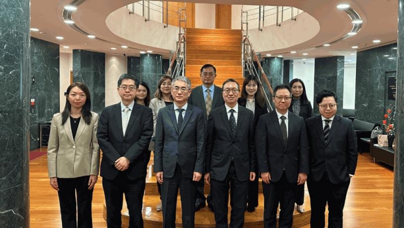 林定國(右二)與澳門特別行政區檢察院檢察長葉迅生(左三)會面。政府新聞處
