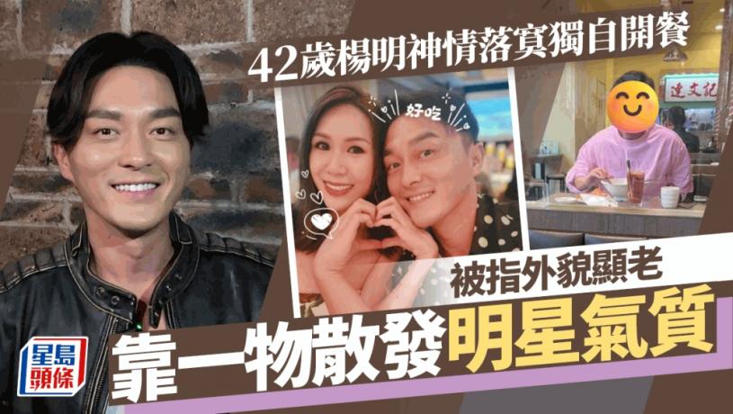 日前有網民在社交網分享茶餐廳美食的照片,當中見到楊明被野生捕獲,獨自一人在九龍灣的冰室開餐,室外陽光普照,估計是白天時分。相中的楊明穿上粉紅色衫,面前有一杯飲了三分之一的凍檸茶,楊明點了一碗麵,食完就低頭玩手機,而枱面上就見到有銀包及太陽眼鏡。在多張照片中見到楊明神情落寞,但網民就打長文稱讚亮眼。