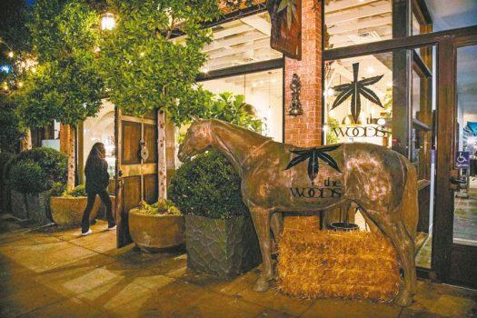 三處中最好的可能是Woods。原因有幾個:首先,它的業主包括馬赫(Bill Maher)、麥肯羅(John McEnroe)等名人。草藥宣導者哈里森在店裡時會向人們打招呼。其次,就在大麻店的後面是Ganja Giggle Garden,這片綠樹成蔭的綠洲裡到處都是佛像、貓一樣大的錦葵和時尚的大麻消費小屋,還有一個公共空間,供即興音樂表演。第三,也是最重要的是藥房貨架上的產品匯集了加州工藝大麻知名品牌Sol Spirit,Huckleberry Hill Farms和No Till Kings,以及洛杉磯地區最受歡迎的Pure Beauty。