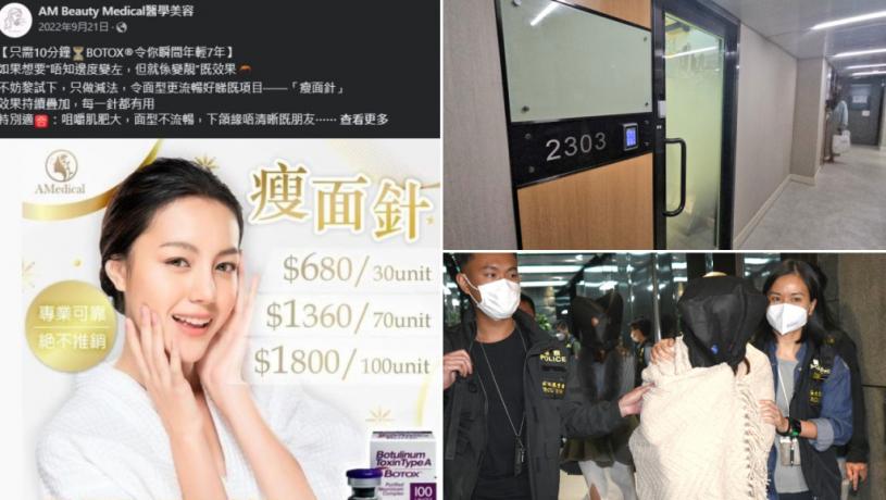 近期不時有市民注射肉毒桿菌(Botox針)後發生醫療事故,引起關注。警方西九龍總區重案組聯同衞生署今日(29日)主動執法,調查旺角彌敦道655號胡社生行2303室一間無牌診所「研基醫療(AM Beauty)」。警方相信這間診所內有人假冒醫生,為顧客注射一系列美容針,過去一年多達超過700人光顧。行動中拘捕診所兩名女子,分別為負責人及職員。