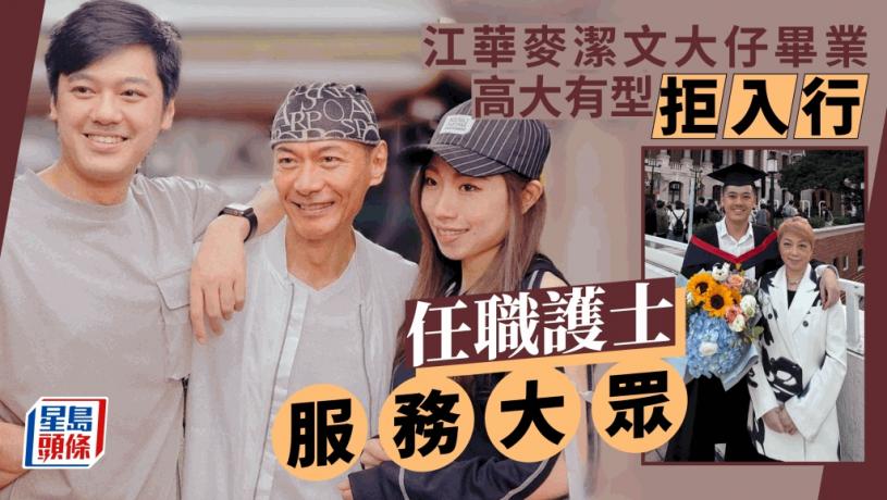 江華與麥潔文(Kitman)結婚超過30年,兩人婚後育有一對子女,分別是大仔陳耀淙(Bryan)及細女陳薔天,大仔陳耀淙與爸爸十足十餅印,高大有型,一度被譽為最強星二代,不過陳耀淙反而選擇做護士服務大眾,反而細女陳薔天醉心演藝工作,昨日(2日)麥潔文在社交平台貼上夫婦二人與陳耀淙穿上畢業袍的合照,其中陳耀淙留言,更加倍感溫馨。