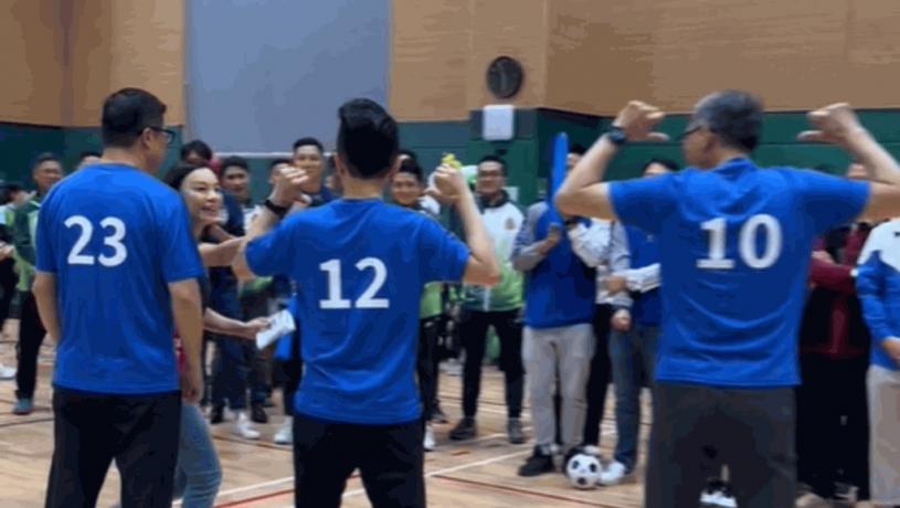 保安局今日(3日)在社交專頁發文,指昨天局方舉行運動日,當中局長鄧炳強、副局長卓孝業及常任秘書長李百全即場大秀球技,試玩足球九宮格,雖然未能在15球內射中全部9格,但鄧炳強信守承諾請在場人士飲汽水,隨後他們為下周日(10日)舉行的區選作宣傳,提醒公務員及市民屆時到票站投票,更笑言「一三五就踢波、二四六就睇唱歌,星期日投完票就笑呵呵!」