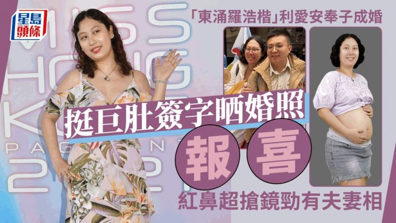 利愛安分享挺巨肚簽字的婚照,婚禮沒有搞得很盛大,反而低調簡約完婚,利愛安在IG分享照片,留言表示:「Dearest Honey, our marriage marks a special moment in our lives, it’s the start of a new stage in our relationship. I cherish every moment with you, and I hope to grow old with you and make more memories together. I love you from the bottom of my heart. Lots of Love From, Sweetie.(親愛的,我們的婚姻標誌著我們生命中的一個特殊時刻,這是我們關係新階段的開始。 我珍惜和你在一起的每一刻,希望能和你一起變老,留下更多回憶。 我打從心底愛你。 來自親愛的,很多愛)」。而利愛安亦少有地分享老公照片,二人身形都好圓潤,非常有夫妻相。而利愛安的「招牌佛祖頭」已不見,照片中可見利愛安懷孕後身形更脹,而且皮膚看來不太好,鼻及下巴都疑因暗瘡而變得紅腫。