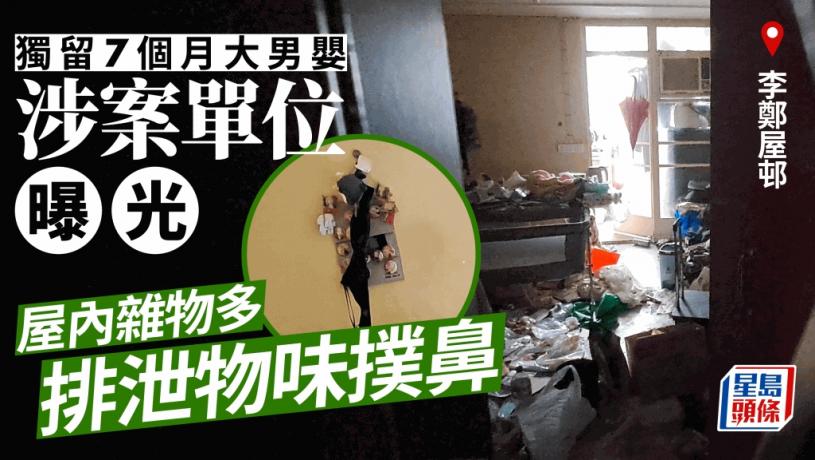 長沙灣李鄭屋邨獨留7個月大男嬰案,涉事單位非常混亂,遍布雜物,連走廊也充斥臭味。有街坊指,涉事單位住客搬來僅數個月,平日見到一名肥胖女子出入,有時傳出嬰兒啼哭聲。