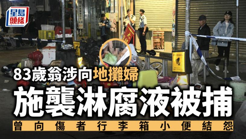 周一晚(4日)元朗發生傷人案,47歲姓陳婦人在教育路對開擺地攤期間,被一名男子淋潑腐蝕性液體並持刀襲擊,元朗警區重案組經深入調查後,於昨晚(5日)在朗屏邨錦屏樓拘捕涉案的83歲姓謝老翁。消息稱,謝翁早於今年6月曾在陳婦的行李箱小便,兩人因此結怨。謝被暫控一項「傷人」罪,案件已於今日(6日)早上在屯門裁判法院提堂,並押後至明年(2024年)2月28日再提訊。