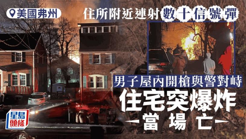 美國弗吉尼亞州阿靈頓縣一名男子周一在住宅內開槍,並與趕抵的警方對峙,其後該幢兩層高住宅發生爆炸,整座建築被炸毀,男子當場死亡,3名在場警員受傷。