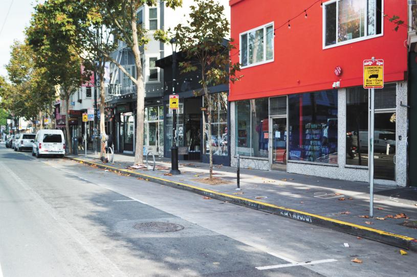 對於附近小商業反映的停車難問題,Valencia街在單車專用道建成後,需要移走70個公眾停車位同時剩下停車位也改為黃界(商業裝載區)。
