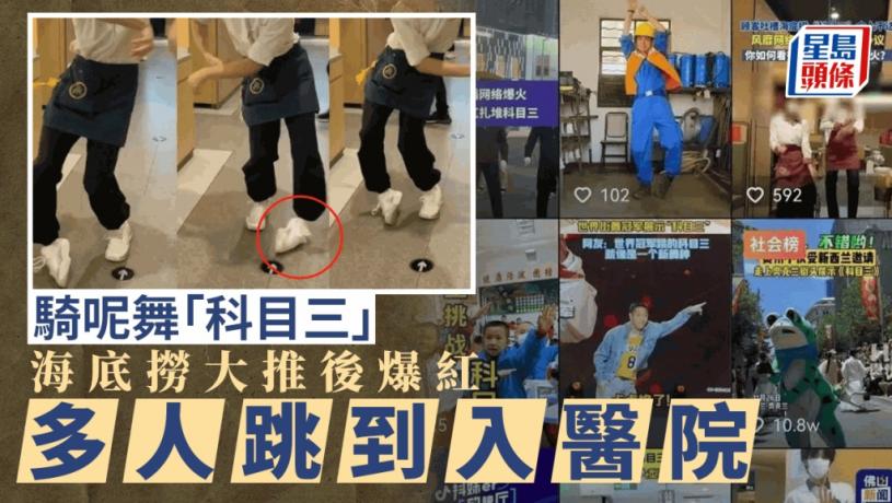 內地網上爆紅的「科目三」舞蹈,因「海底撈火鍋員工事件」,令「科目三」更為火爆,不過近期陸續傳出有人跳該舞受傷,譬如杭州一名25歲的OL因動作幅度太大,導致拗柴踝關節外側韌帶受傷。醫生提醒,該舞步容易導致腳踝受傷,民眾需量力而行。