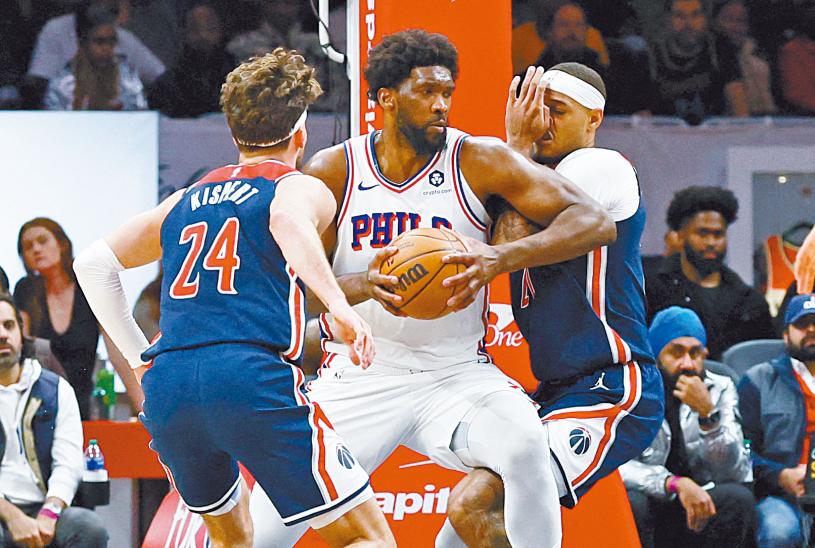 與奇才二番戰,恩比德第一節打滿12分鐘,開場連續強吃加福德殺到禁區得分,禁區輕鬆扣籃、空切跑位中投穩穩命中,單節10中7獨砍15分5籃板,恩比德確實不可阻擋,不過76人首節25:29落後4分。