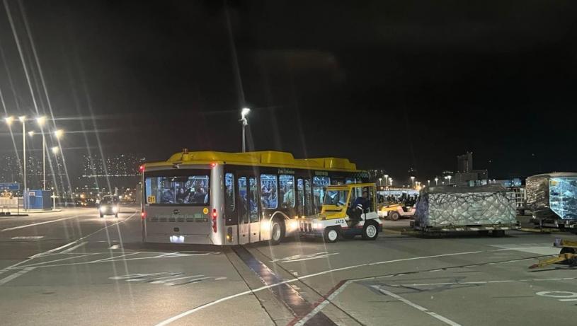 機場發生交通意外。今日(9日)凌晨零時許,赤鱲角機場1號客運大樓L4層對開,一輛接載多名乘客的機場接駁巴士與一輛正運送貨物的拖車發生相撞,拖車車頭撞向巴士右邊車身。意外中,巴士上一名50餘歲女乘客報稱腰痛,由救護員送往北大嶼山醫院治理。警方正調查事件原因。