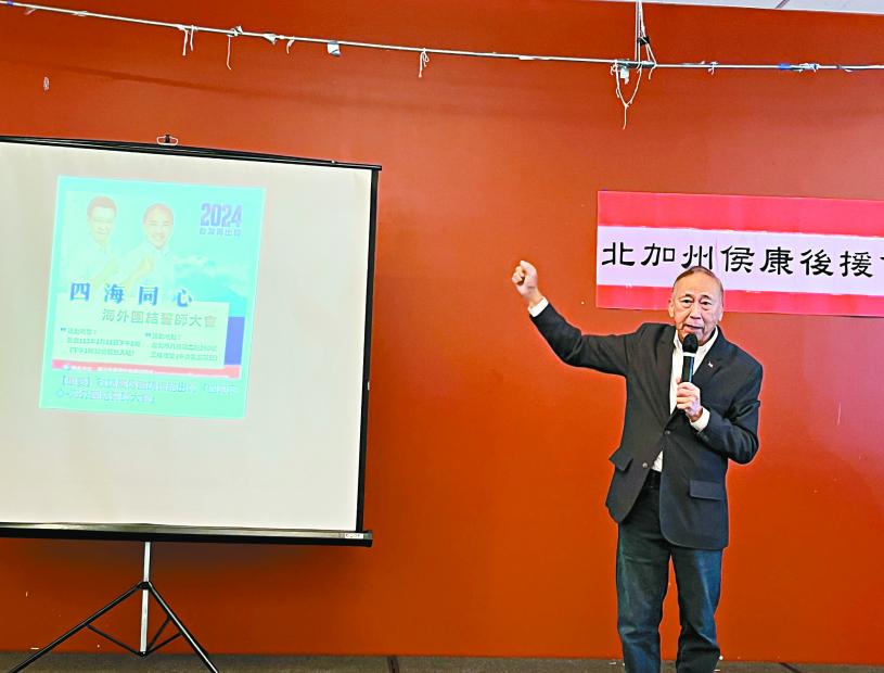 12月10日,北加侯康後援會在聖他克拉市(Santa Clara)召開台灣大選選前餐會,90多位藍營的支持者到會造勢。