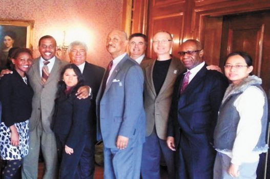 朱寶註冊會計師(右一)和紐約州參議員參加第二屆紐約州註冊會計師協會立法早餐會議。