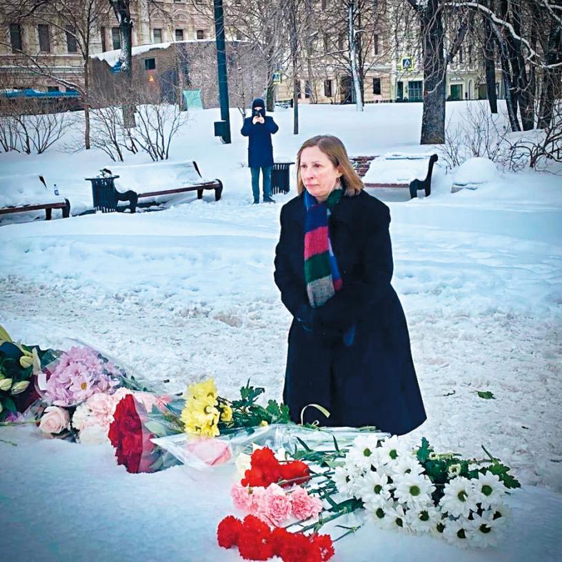 綜合法新社及路透社報道,崔西18日被拍到現身索洛維茨基石碑(Solovetsky Stone),這座紀念政治迫害受害者的紀念碑已成為悼念納爾瓦尼的主要地點。