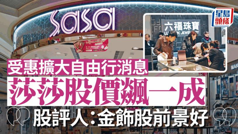 中央港澳工作辦公室主任、國務院港澳事務辦公室主任夏寶龍今日(22日)起訪港考察調研7日之際,有消息指特區政府早前提出增加內地旅客來港數目,獲中央政府積極回應,並會於短期內宣布,料包括擴大自由行城市。受消息刺激,過往一直被視為「自由行受惠股」的莎莎(178)今早股價明顯受捧,一度大升12%至0.93元;截至中午則報0.9元,續升逾8%。其他零售股方面,周大福(1929)及六福(590)中午報11.94元及21.3元,升1%及3.4%。