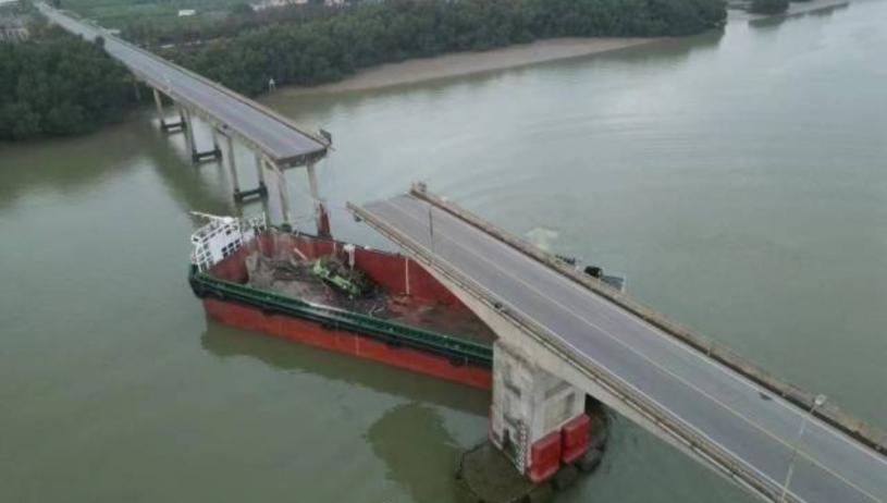 廣州南沙區瀝心沙大橋今早被貨櫃船撞擊,橋面斷裂,多部車輛墮橋,當局表示,至今2人死亡,3人失聯,涉事貨櫃船船主已被當局控制。