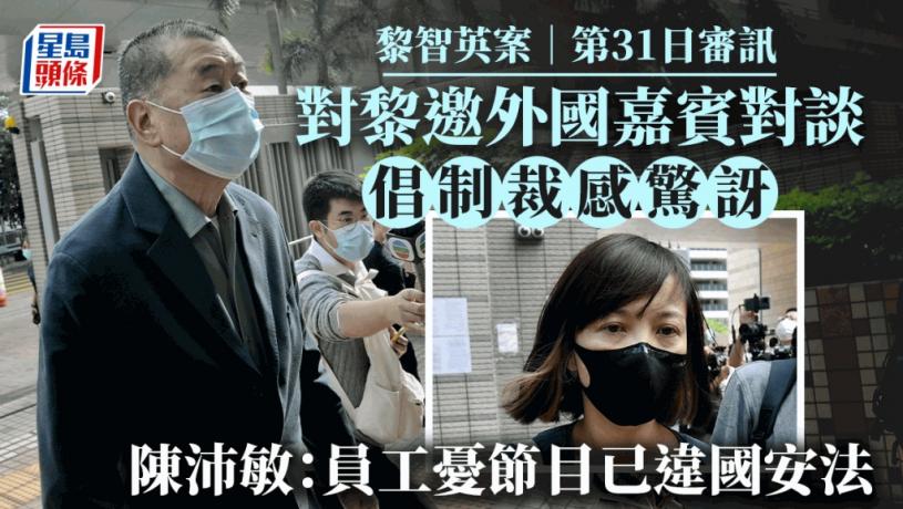 陳沛敏又供稱,透過黎智英寫的文章或「飯盒會」等場合,她理解到黎智英覺得外國或美國對中國和香港施加壓力、可以阻止香港國安法生效;在香港國安法生效後,黎智英仍繼續做Live Chat訪談節目,「佢Live Chat全部都請外國人做對談嘉賓」,即使國安法生效後,黎智英仍抱有國際壓力是有用的看法,而國際壓力包括制裁。