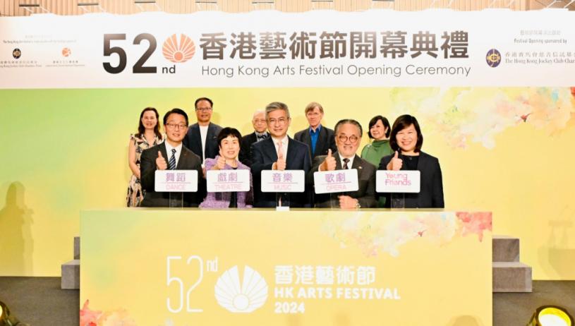 第52屆藝術節開幕禮於今天(22日)舉行,主禮嘉賓包括文體旅局副局長劉震、康文署署長劉明光、馬會慈善事務部主管(文化、體育及社區聯繫協作)葉巧兒、香港藝術節主席查懋成與行政總監余潔儀。