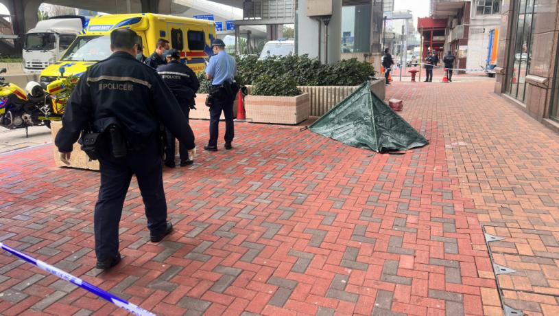 男子由商廈墮地不治。梁國峰攝