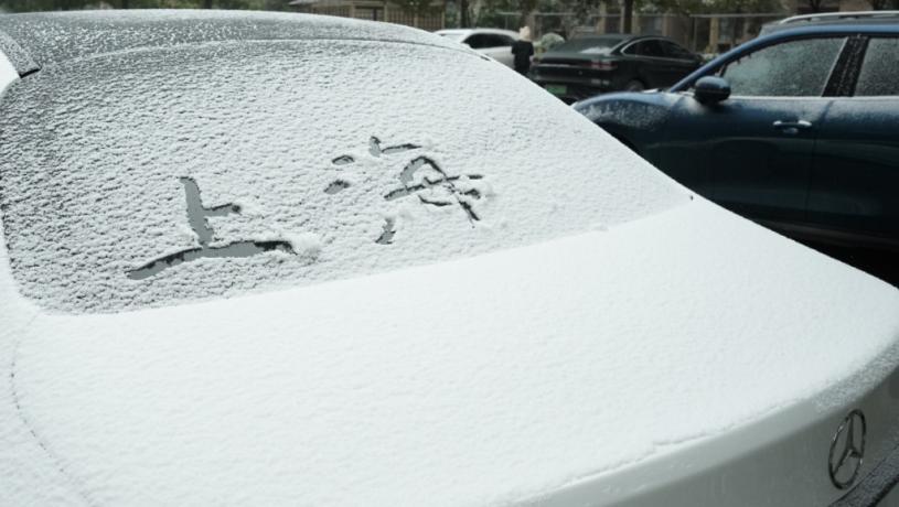上海今晨出現短暫小雪,全市最低溫度普遍在0°C到-1°C,許多市民表示「總算沒有白冷」。