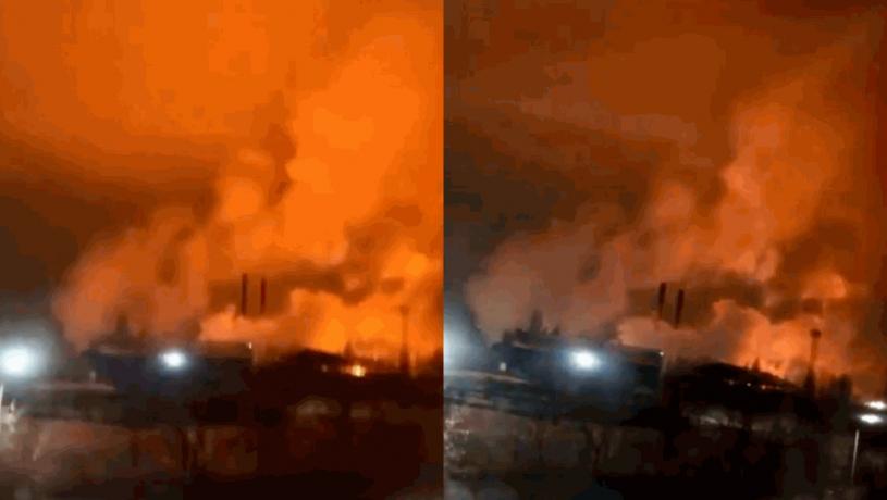 網傳影片顯示,工廠發生爆炸,巨大的橙色火焰照亮了夜空。路透社報道,新利佩茨克鋼鐵公司(Novolipetsk Steel, 簡稱NLMK)是俄羅斯四大鋼鐵公司之一。