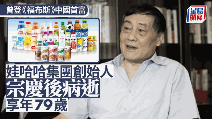 娃哈哈25日發訃告:中國共產黨黨員,全國勞動模範,全國五一勞動獎章獲得者,優秀中國特色社會主義事業建設者,改革開放40年百名傑出民營企業家,第十、十一、十二屆全國人大代表,中國共產黨浙江省第十二、十三、十四屆代表大會代表,娃哈哈集團創始人、董事長宗慶後,因病醫治無效,於2024年2月25日10時30分逝世,享年79歲。