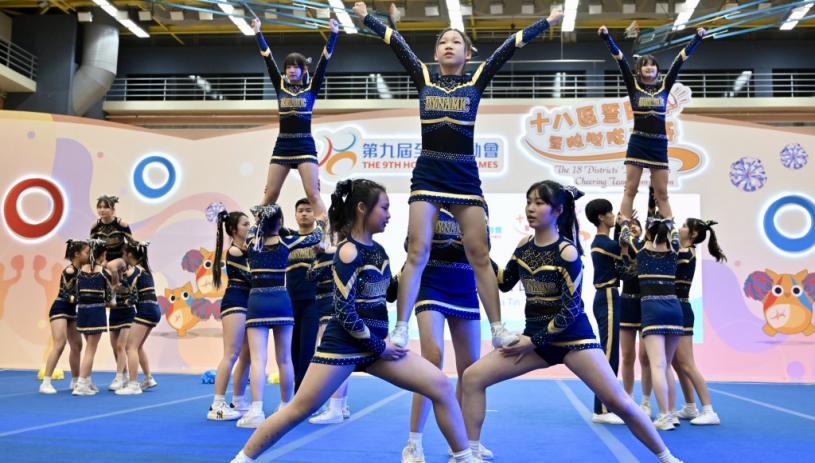 第九屆全港運動會今日(25日)在中山紀念公園體育館舉行十八區誓師暨啦啦隊大賽,宣告來自十八區的參賽運動員已準備就緒,全力以赴爭取佳績;啦啦隊大賽旨在鼓勵市民積極支持各區運動員參與港運會賽事,為港運會增添歡樂氣氛,同時展現地區特色和活力,推廣體育文化。